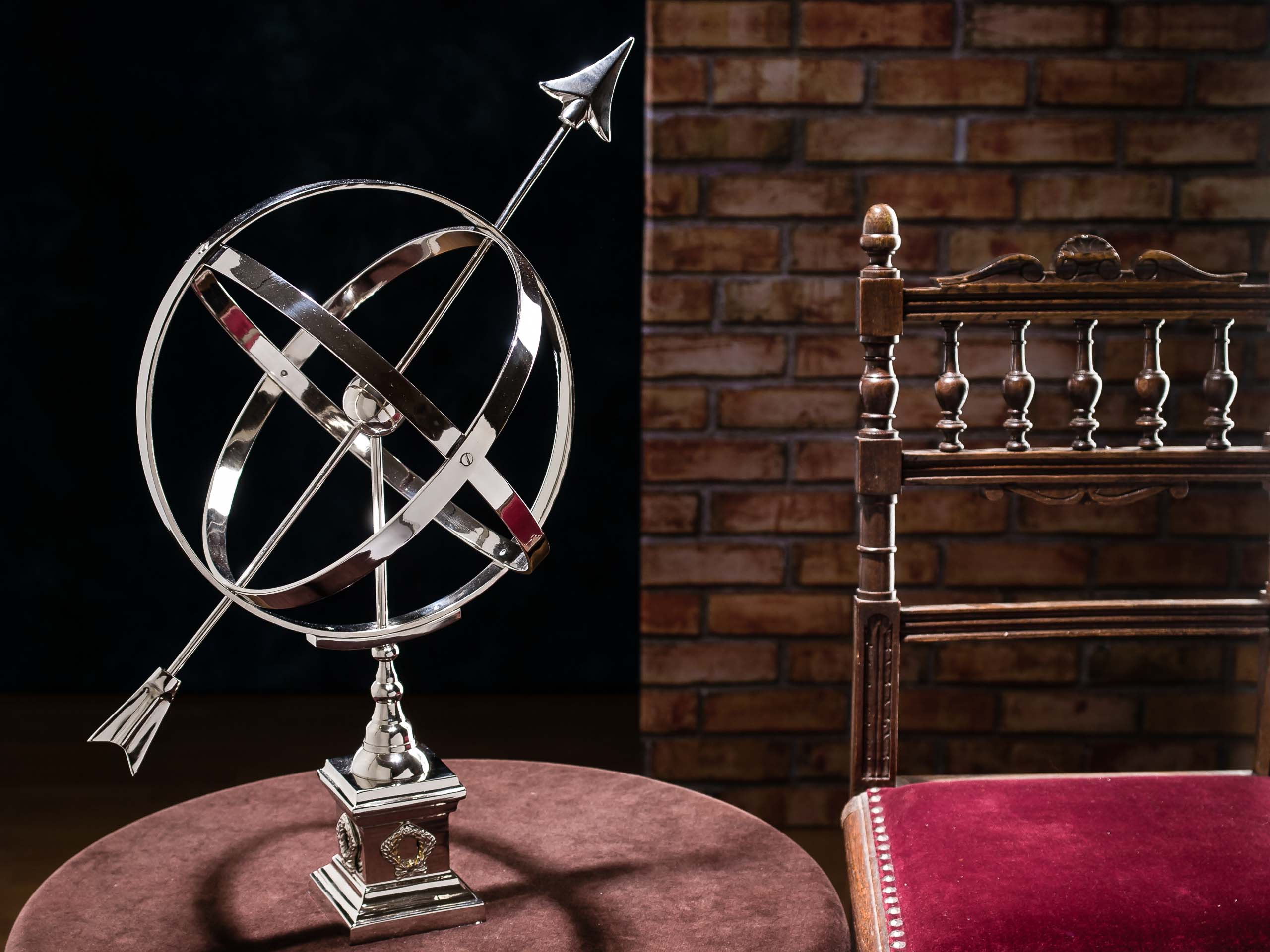 Objekt "Sonnenuhr 59cm Aluminium vernickelt Haus Garten Dekoration Nostalgie Antik-Stil"